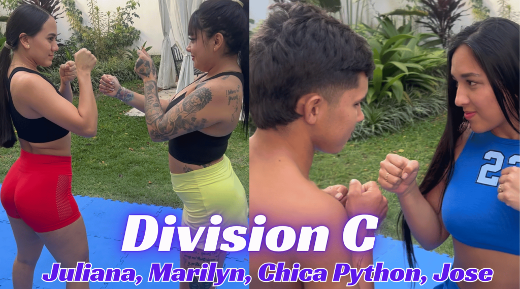 Joining him in the division is the beautiful and athletic Sofia, who actually surprised and beat Kevin in a tournament qualifier match. Rounding out the division will be Sweet Sara and Mishelle, both of whom have headscissor fantasy experience, with little or zero competitive wrestling experience. Mishelle does have one competitive victory under her belt having fought and beaten Jose. For Sweet Sara, this will be her very first time participating in competitive wrestling matches.